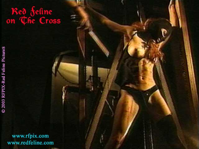 Red Feline on the Cross – The classic tale of torture and crucifixion. This is our all time bestseller. Red Feline endures seven deliciously nasty tortures just because she walks into the right place at the wrong time. She’s the perfect martyr because she’s a fantasy, her own wild fantasy. You’ll have to repeat to yourself … “It’s only a fantasy … It’s only a fantasy”. A long, endless nightmare of whipping, torture and crucifixion. If you haven’t seen this, you haven’t seen anything at all.