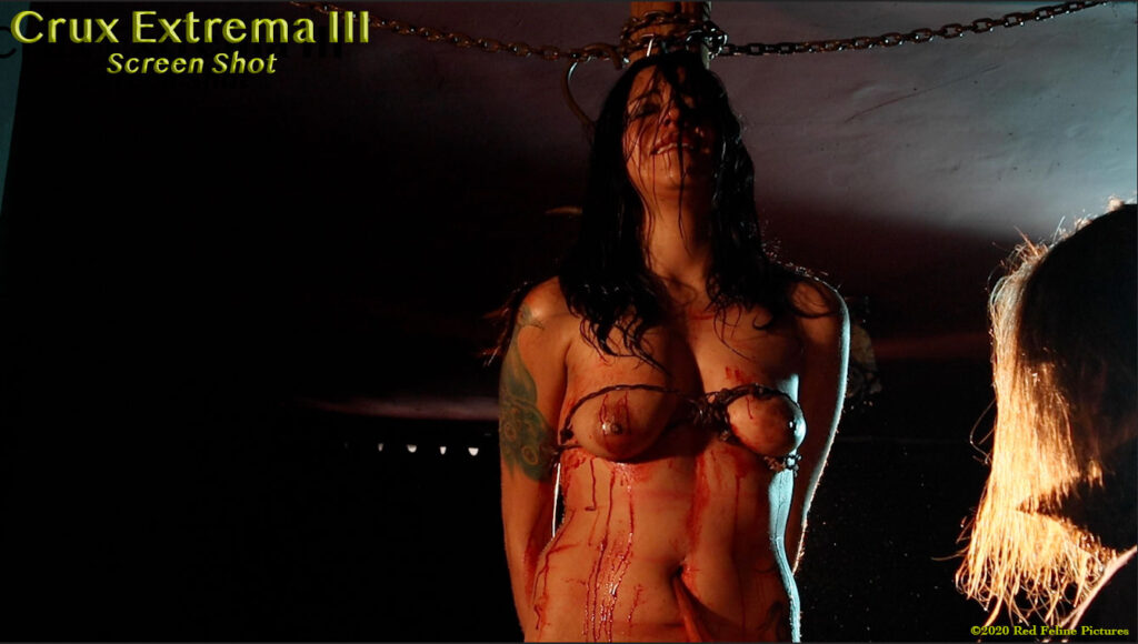 Meanwhile, in CruXtreme II – The Roommate, Dani is now stretched on the rack, laying on her back, anticipating the lash that will fall on her chest, her belly, her legs.