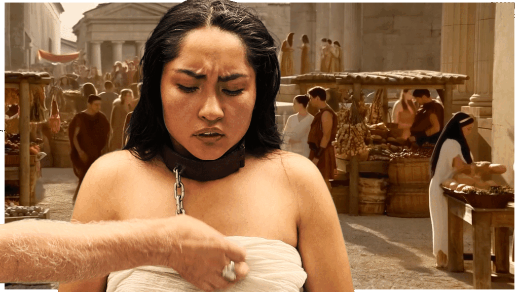For scenes where a significant number of people are depicted watching a character—such as a view from the perspective of someone on a cross—it is essential to set up the camera behind the character. The shot needs a clear point of reference, which could be the character’s head, shoulders, or arm, to establish the perspective of those below or within the scene. While arranging this point-of-view during production is not difficult, it does require careful planning and coordination.
